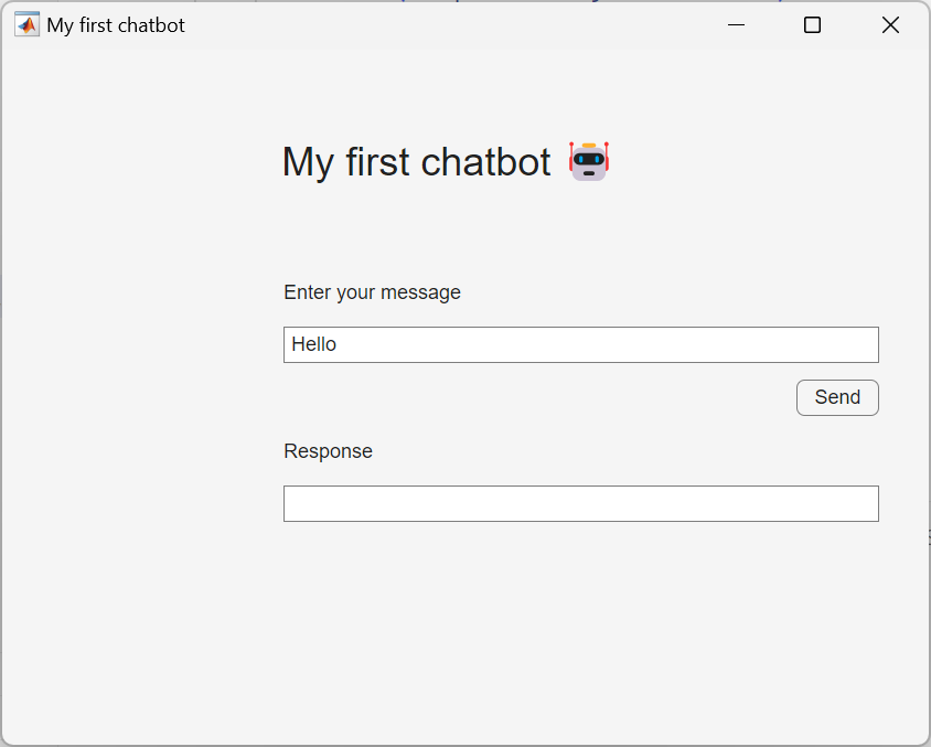 Congratulations 🎉 You have created your first chatbot. If you assemble the learnings from the previous sections, you will be able to replicate the code in this example in chatbot.m.